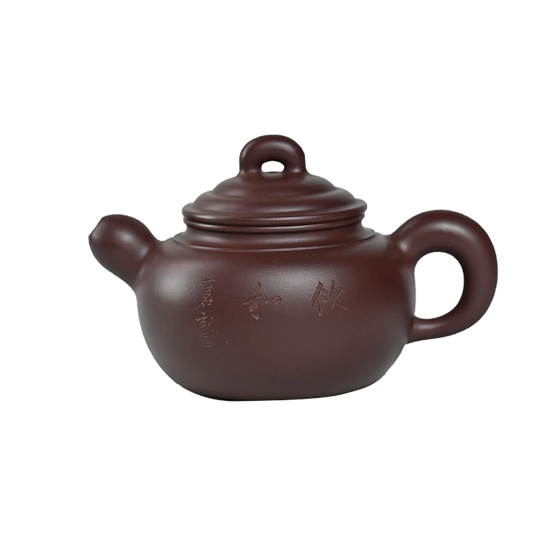 「和饮壶 · Harmony」 — 300ml Master Handmade Yixing Purple Clay Teapot (Raw Ore Zhu Ni · Classic Form · Calligraphy Engraving)