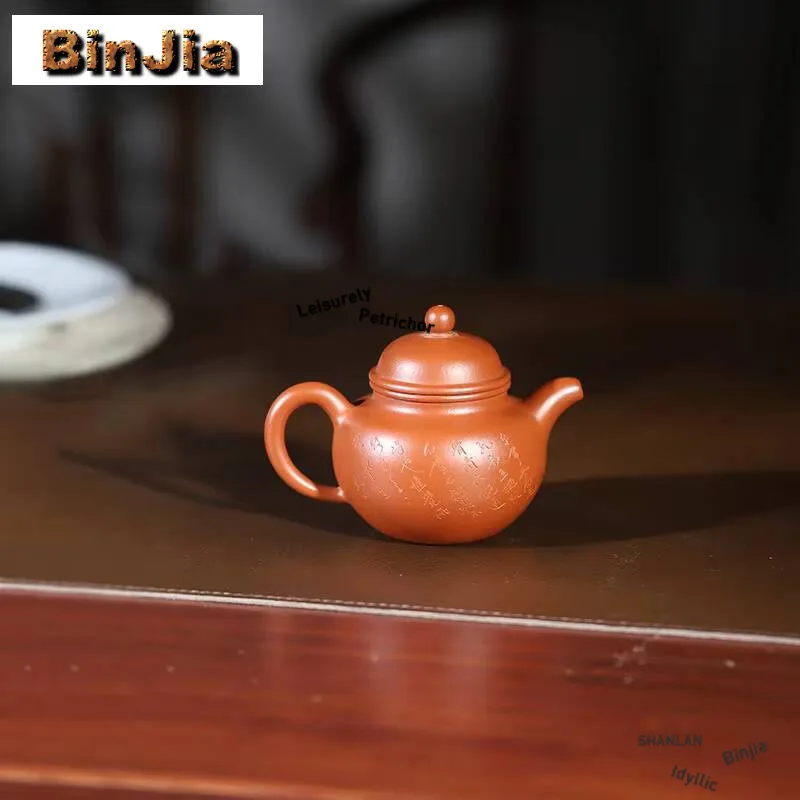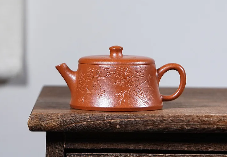 「刻韵壶 · Carved Harmony」 — 210ml Handmade Yixing Teapot (Raw Ore Zhu Ni Clay · Traditional Carved Form · Built-in Strainer)