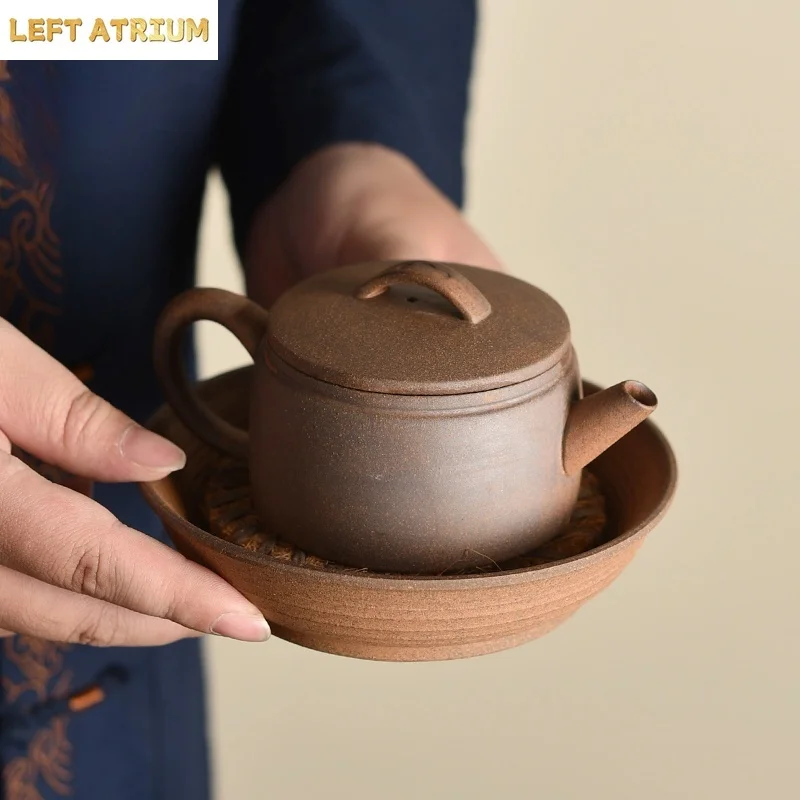 「侘寂壶 · Kurohō」 — 145ml Handmade Coarse Pottery Teapot (Retro Japanese Style · Rustic Clay Body · Gongfu Infuser Pot)