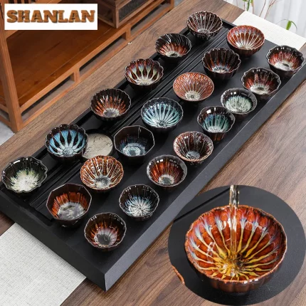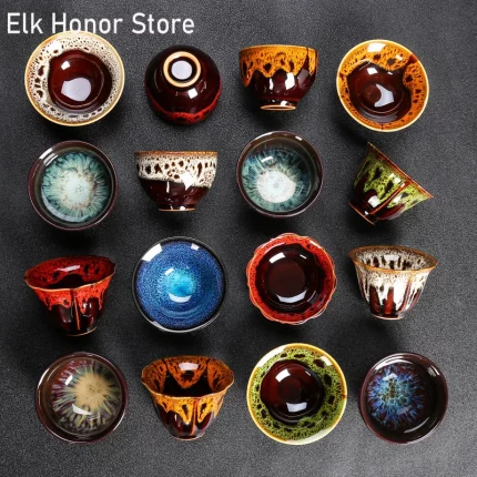 1pc Kiln Change China Ceramic Tea Cup Temmoku Glaze Porcelain Kung Fu Cups Set Pottery Jianzhan Drinkware Tableware Wholesale