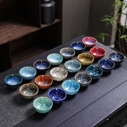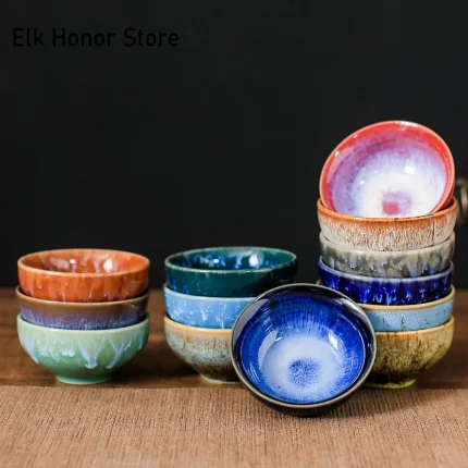 1pc Multicolor Kiln Fambe Porcelain Tea Cup Large Kung Fu Temmoku Glaze Ceramics Japanese Master Teacup Retro Single Tea Cups
