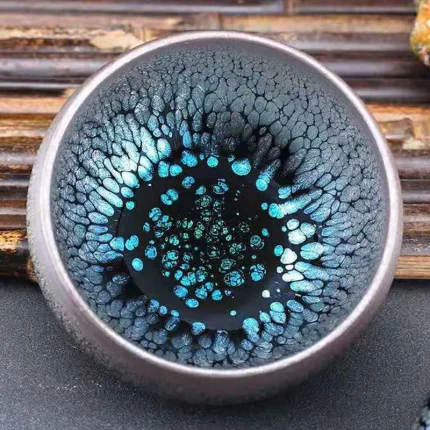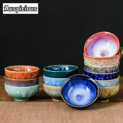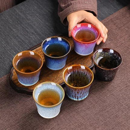 Colorful Tenmoku Tea Cup Porcelain Tea Bowl Chawan Naturally Glazed in Kiln under High Temporature