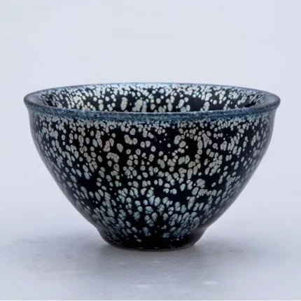 Handmade China Tenmoku Flower Tea Bowl Cup Jianzhan with Oil Spot Glaze Traditional Chinese Ceramics