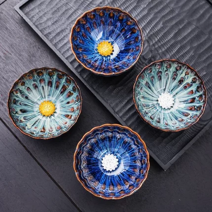 Hand-built Teacups Set, Colorful Obsidian, Tianmu Teacups, Ceramic Kiln Change Teacups, Large Master Cups, Home