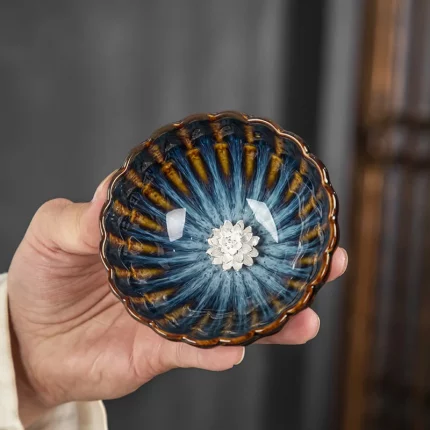 Dunhuang Lotus Tea Cup Master Cup Jianzhan Ceramic Kung Fu Tea Cup Kiln Change Marriage Cup Home Use Gifts for Friends