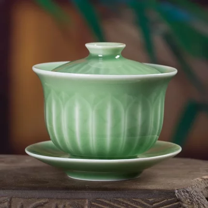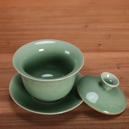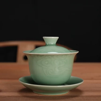 Longquan Celadon Porcelain Gaiwan China Teacups Crackle Glaze Teapot Drinkware 150ml