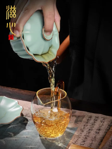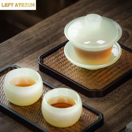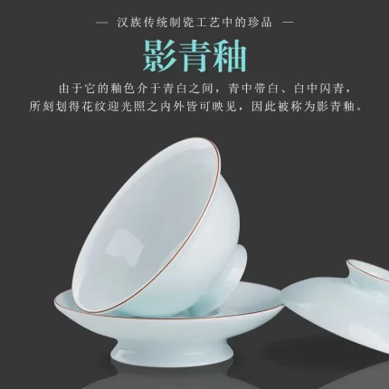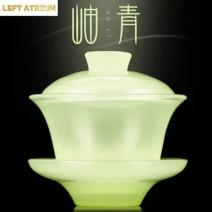 Tianqing Sky Blue Jade Porcelain Sancai Gaiwan Large Tea Bowl Chinese Kungfu Tea Set Glass Tea Tureen Premium Tea Set