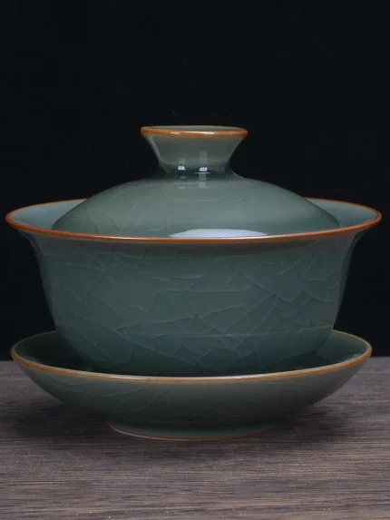 Gaiwan Longquan Celadon Kung Fu Tea Set Three Talents Ge Kiln Open Slices Ceramic Tea Bowl Hand Grab Covered Bowl
