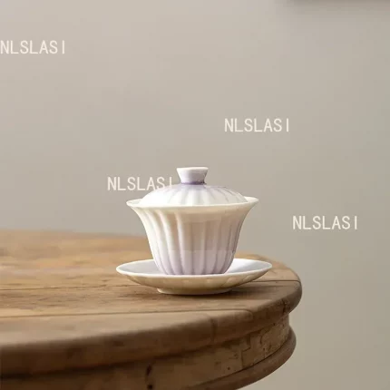 160ml Taro Purple Chrysanthemum Petal Gaiwan Vintage Heat Insulation Tea Tureen Tea Bowl With Lid Kit Tea Making Cover Bowl Gift