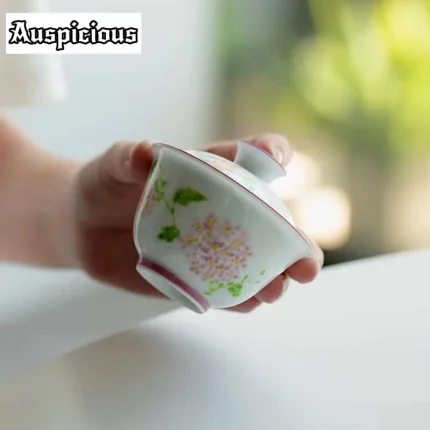 135ml White Jade Clay Gaiwan Ancient Hand-painted Flower Anti-scald Tea Tureen Tea Maker Cover Bowl Drinkware Supplies Ornaments