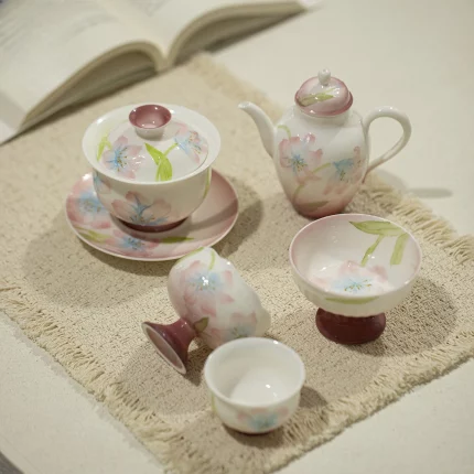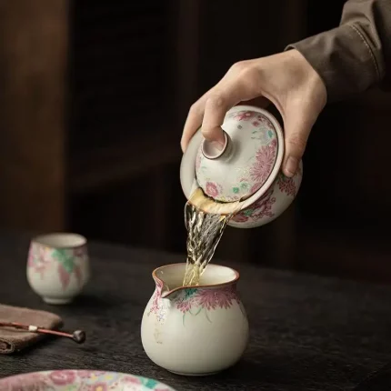 1Pc Pink Peony Hand-painted Autayaki Tea Set Collection Ceramic Teapot Master Cup Teacup Cover Bowl Chinese Kung Fu Tea Set Gift