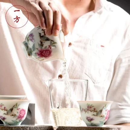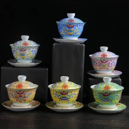 Ceramic Gaiwan, Luxury Chinese Tea Set, Tureen, Teacup, Sancai Chawan, Bowl Cup Saucer and Lid, Teaware, Color Enamel Porcelain