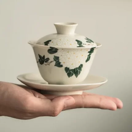 Chinese Ceramic Gaiwan Hand Painted Teacup Tea tureen handmade Porcelain Teaware Accessories Drinkware Personal Single Cup