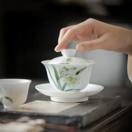 Hand Painted Magnolia Flowers Ceramic Opening Gaiwan For Tea Green Tureen Teaware Set Chinese Tea Bowl Chawan Lily Deng’s Store