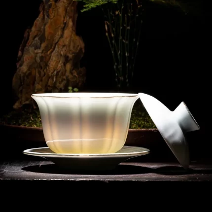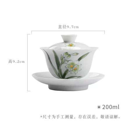 Chunxuan Tang Dehua Vegetarian Roast Handmade White Porcelain Gaiwan White Jade Kung Fu Tea Set Single Tea Making Gaiwan Large