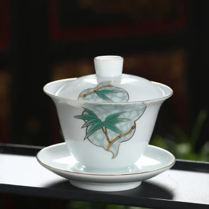 Gongfu Tea Set Ceramic San Cai Gai Wan China Handmade Tea Cups Gaiwan Tureen Hand-painted Tea Bowls