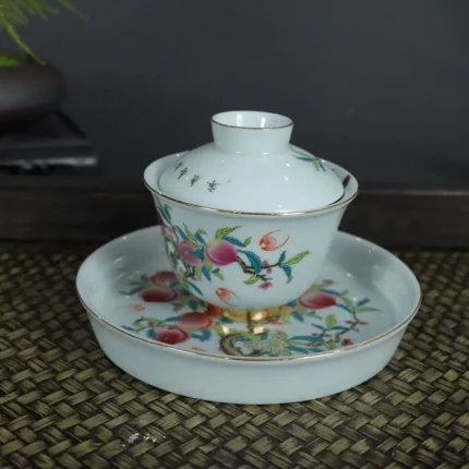 Jingdezhen Jade Porcelain Pastel Longevity Peach Ceramic Cover Teacup Tea Making Gaiwan Hand Painted Kung Fu Bowl Single Thin