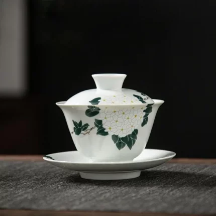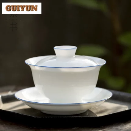 Sheep Fat Jade Gaiwan Elegant Porcelain Bowls Tea Tureen Tea Bowl With Lid Kit Tea Brewing Cover Bowl Cafes Supplies Collection