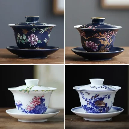 Palace Luxury Enamel Ceramic Gaiwan Teacup Hand Painted Flower Pattern Tea Tureen Travel Tea Bowl Home Teaware Drinkware 150ml