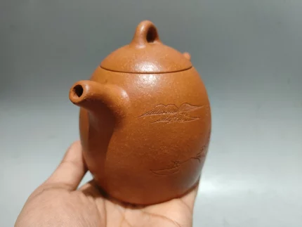 「龙蛋山水 · Dragon Egg Landscape」 — 320cc Engraved Yixing Purple Clay Teapot | Qin Quan Form · Dragon Egg Shape · Old Zisha Clay · Landscape Motif · Buddhist Wealth Symbolism