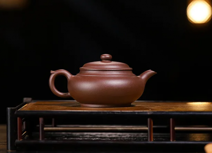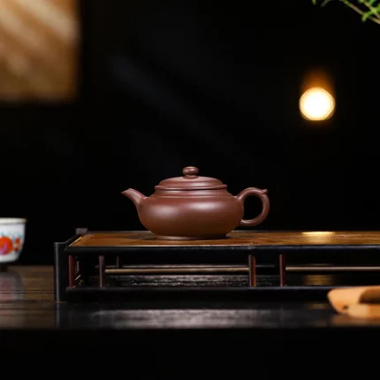 「平灯壶 · Lanterne Silencieuse」 — 170ml Full Handmade Yixing Purple Clay Teapot | Artist-Crafted Flat Lamp Form · Raw Ore Zisha Mud · Gongfu Kettle with Filter · Gift-Ready Tea Set