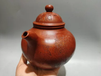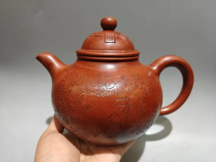 「刻韵壶 · Carved Harmony」 — 210ml Handmade Yixing Teapot (Raw Ore Zhu Ni Clay · Traditional Carved Form · Built-in Strainer)