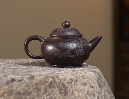 「松影金泥 · Pinecrest」 — 200ml Handmade Yixing Purple Clay Teapot | Pine Tree Motif with Raw Ore Black Gold Mud · Traditional Gongfu Edition