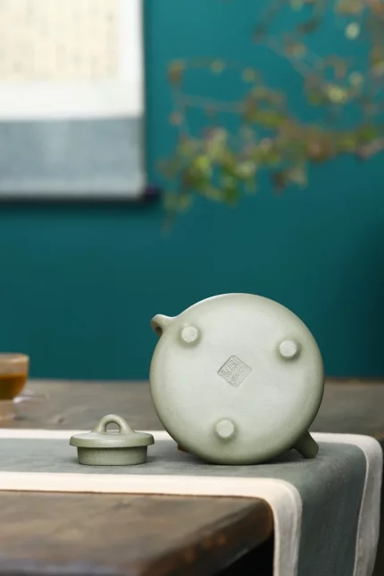 「青泥映素 · Verdant Still」 — 200ml Handmade Yixing Purple Clay Teapot | Raw Ore Green Mud Edition · Aesthetic Gongfu Teaware Collection