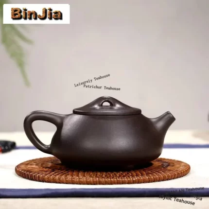 「玄金石瓢 · Obsidian Scoop」 — 200ml Boutique Handmade Yixing Purple Clay Teapot | Stone Scoop Form with Raw Ore Black Gold Mud · Gongfu Zisha Teaware Gift Edition