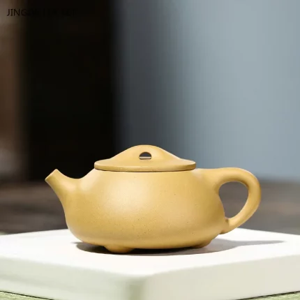 「金段素韵 · Golden Still」 — 260ml Master Handmade Yixing Purple Clay Teapot | Simple Classic Form with Raw Mineral Gold Section Mud · Zisha Gongfu Tea Set