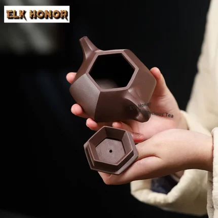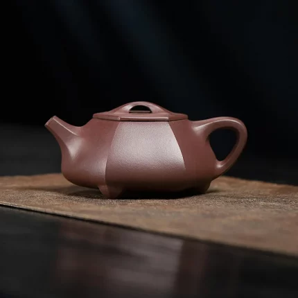 「六方石瓢 · HexaScoop」 — 200ml Handmade Yixing Purple Clay Teapot | Hexagonal Stone Scoop Form · Raw Ore Zisha · Vintage Gongfu Teaware Gift Edition