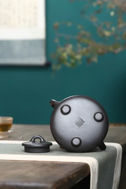 「玄泥古韵 · Obsidian Echo」 — 200ml Handmade Yixing Purple Clay Teapot | Archaize Black Clay Edition · Gongfu Tea Ceremony Drinkware