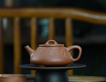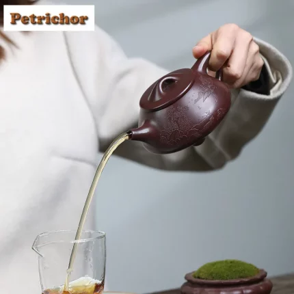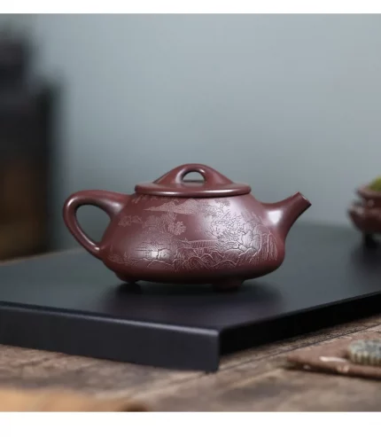 • 「香茄壶 · Fragrant Eggplant」 — 250ml Handmade Yixing Purple Clay Teapot (Raw Ore Zi Ni · Inner Ball Filter · Floral Landscape Engraving) 「香茄壶 · Fragrant Eggplant」 — 250ml Handmade Yixing Purple Clay Teapot (Raw Ore Zi Ni · Inner Ball Filter · Floral Landscape Engraving) $179.99 Original price was: $179.99.$159.99Current price is: $159.99.