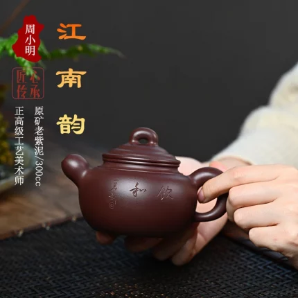 「和饮壶 · Harmony」 — 300ml Master Handmade Yixing Purple Clay Teapot (Raw Ore Zhu Ni · Classic Form · Calligraphy Engraving)
