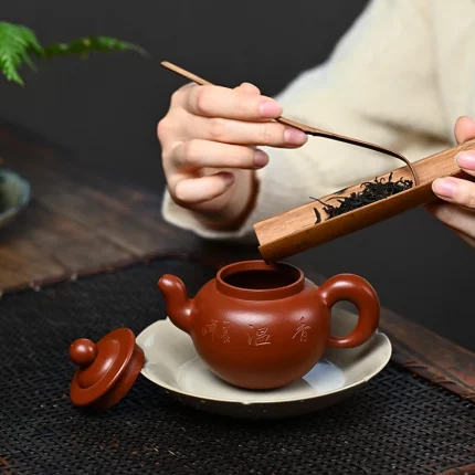 「梅影壶 · Plumtrace」 — 230ml Handmade Yixing Purple Clay Teapot (Raw Ore Zisha · Floral Engraving · Beauty Form)