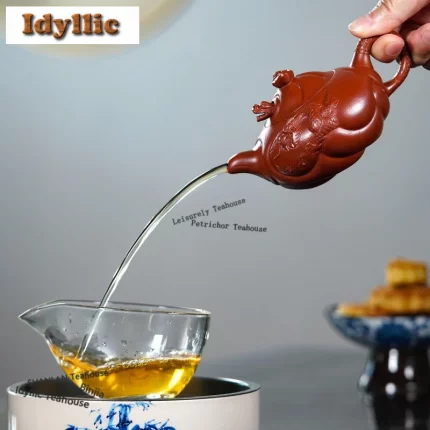 230ml Retro Yixing Purple Clay Teapots Handmade Fish Dragon Pot Raw Ore Zhu Mud Kettle Zisha Tea Set Drinkware Craft Gifts Gift