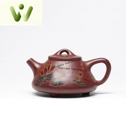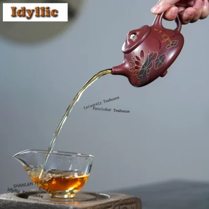 「莲影浮光 · Lotus Bloom」 — 180ml Handcrafted Yixing Zisha Teapot with Gold-Outlined Floral Motif | Gongfu Brewing for Oolong & Pu’er · Decorative Edition