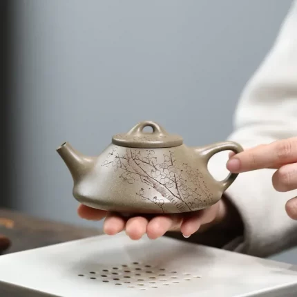 「枝影如诗 · Branchlight Form」 — 160ml Handcrafted Yixing Purple Clay Teapot with Floral Motif | Gongfu Brewing for Fragrant Black & Oolong Teas · RI ONIY Famous Artist Edition