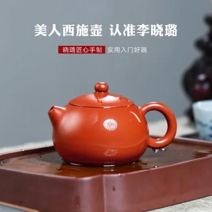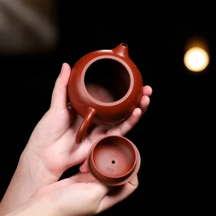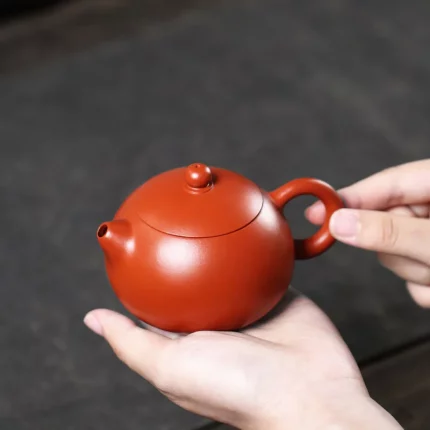 「朱影微心 · Emberdrop」 — 90ml Handmade Yixing Purple Clay Teapot | Xi Shi Form with Ball Hole Filter · RI ONIY Boutique Dahongpao Edition