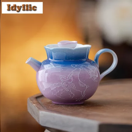 160ml Hand-painted Lily Jade Mud Handle Teapot Elegant Tea Infuser Pot Tea Brewing Kettle With Filter Teaset Supplies Craft Gift