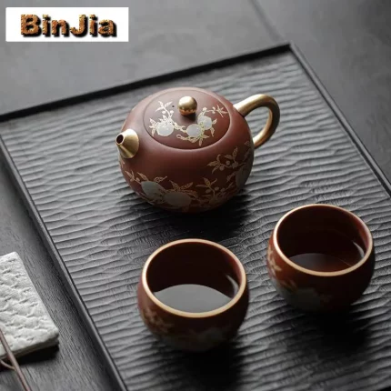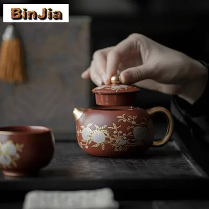 190Ml Chinese Purple Clay Xishi Teapot Handmade Gold Painted Peach Pot Zen Tea Soaking Kettle Items Supplies Ornaments Gifts