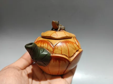5″Chinese Yixing Purple Clay Pot Pottery Frog statue in lotus shape Teapot Kettle Teapot Pot Tea Maker Office Ornaments