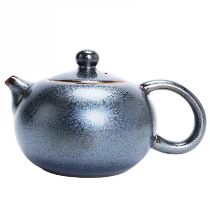 Creative Kiln-built Tea Pot Ceramic Household Kung Fu Tea Set Small Teapot Tianmu Glaze Single Retro Household Supplies, 1Pc