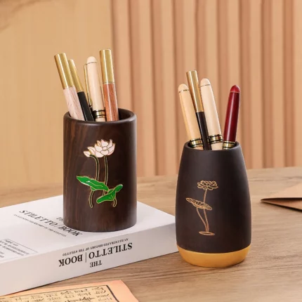 Solid Wood Pen Holder Hollow Out Storage Pencil Box Makeup Brush Holder Table Stationary Organizer Office School Supplies Gifts
