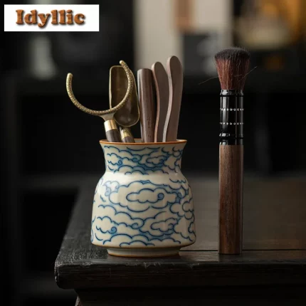 Ru Kiln Beige Auspicious Cloud Pattern Tea Six Gentlemen Vintage Tea Tool Set Household Teaware Utensils Tea Items Ornaments