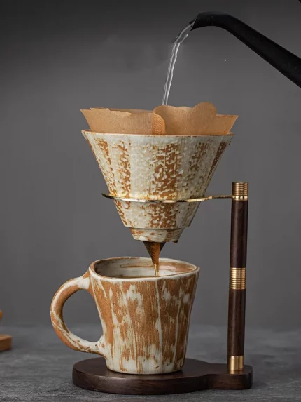 Japanese Style Handmade Coarse Earthenware Hand-Brewed Coffee Cup Set, Retro Household Ceramic Mug Christmas/ New Year Gift
