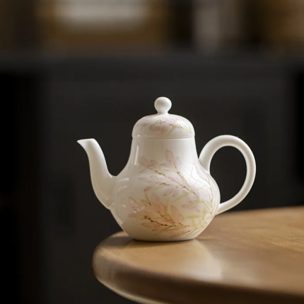 「瓷羽英壶 · Ivory Grace」 — 400ml Bone China Teapot (45% Bone Ash · English Afternoon Tea Style · High-Grade Porcelain · Wedding & Gift-Ready)