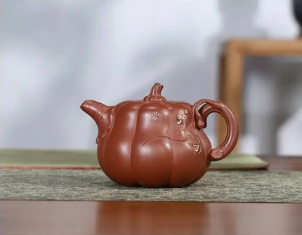 「秋藏壶 · Autumn Reserve」 — 400ml Handmade Yixing Purple Clay Teapot (Raw Ore Purple-Red Mud · Pumpkin Form · Carved Detail · Zisha Gongfu Kettle)
