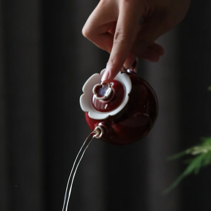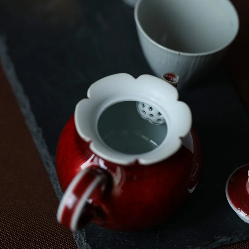 ★Jingdezhen Ceramic Teapot Handmade Lang Kiln Red Kiln Changing Ball Hole Pot Creative Single Teapot Ball Hole Kung Fu Tea Set