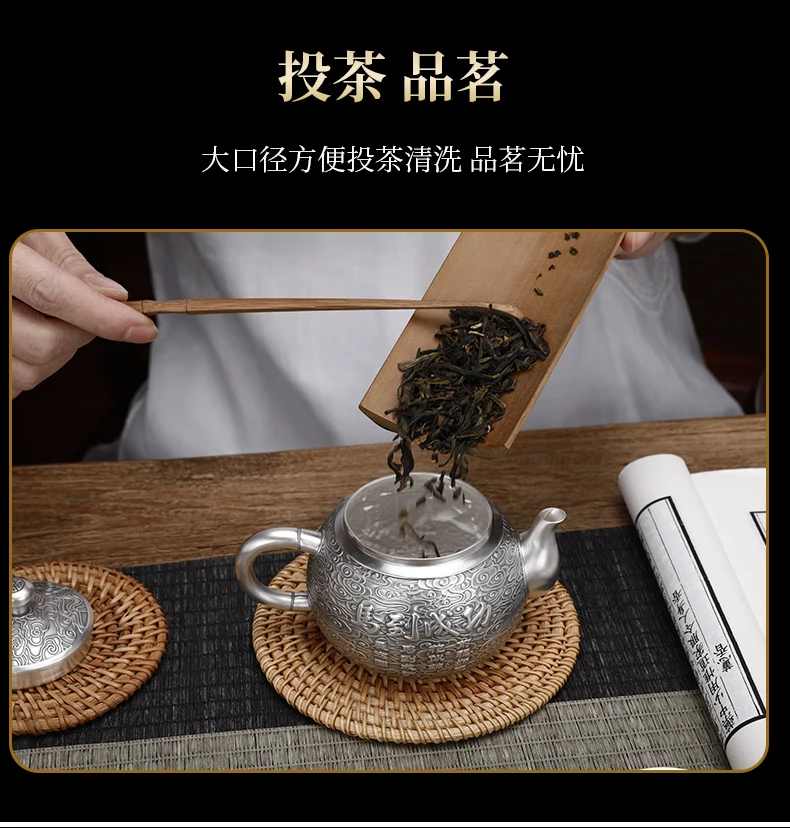 Silver’s antibacterial properties and ability to enhance tea’s clarity make it a prized material in traditional tea culture. It is also believed to support health and longevity.
